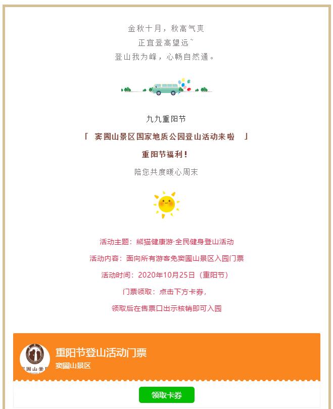 【好消息】恰值秋日美,正是登高時(shí)!這個(gè)周末重陽節(jié)登山免門票活動(dòng)來啦!